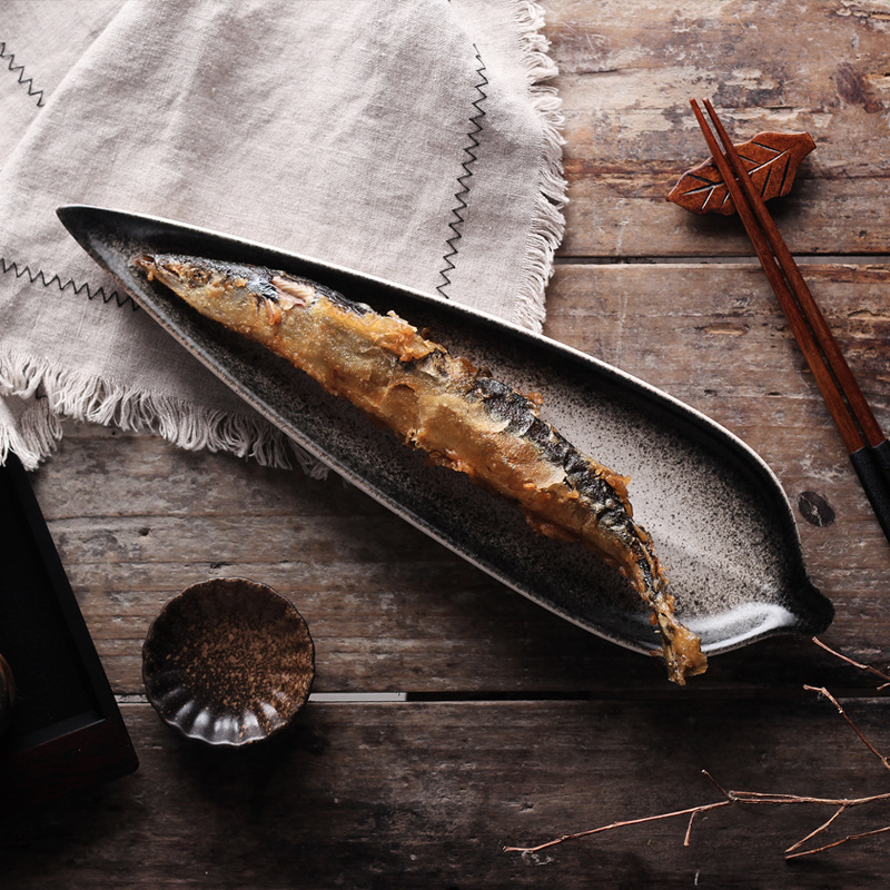 1pc Ceramic Sushi Plate, Creative Leaf Design Plate for Cuisine Restaurants, Sashimi Plate, Fish Plate, Dessert & Snack Plate