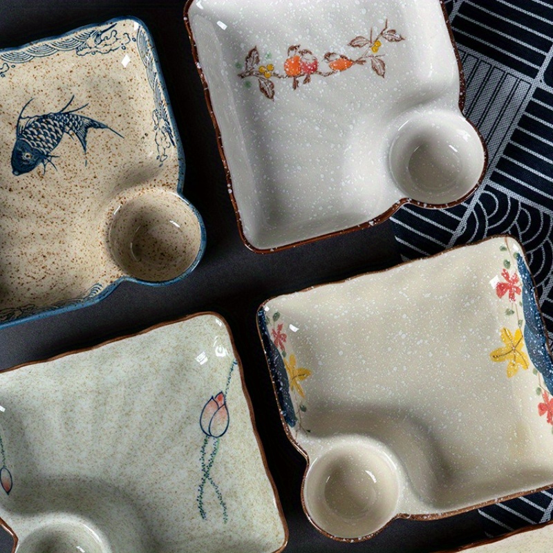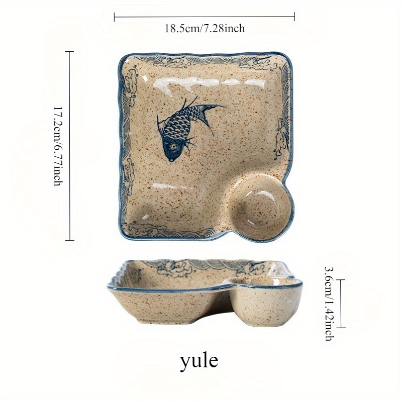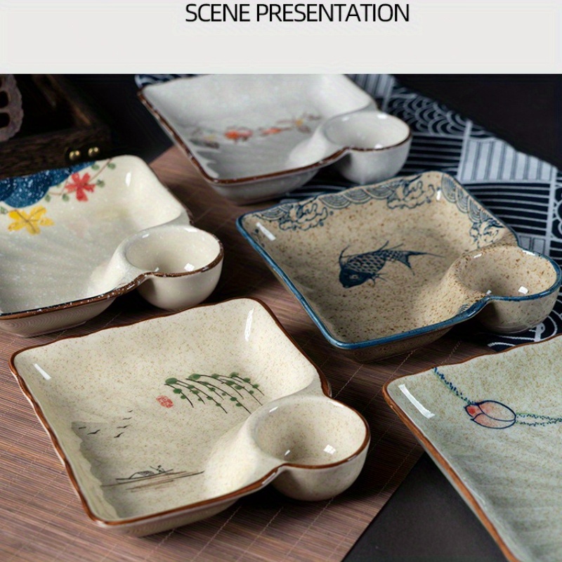 2pcs Japanese Style Ceramic Dumpling Plate Set | 7.11inch Divided Serving Plates with Compartments for Gyoza, Dipping Sauces & Appetizers - High-Temperature Porcelain Design, Elegant yet Durable for Daily Use